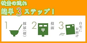 ①検査キットが到着 キットが到着したらまずは検査依頼書に返信先などをご記入ください。②採尿する 朝起きて一番の尿をお採り下さい。量は、採尿管の1/3くらいまで入れていただければ大丈夫です。 漏れないようにキャップをしっかり締めて、付属のチャック付袋に入れてください。 ※尿が薄くなりますため、水分を多量にとった後の採尿はお避け下さい。 ※生理期間中の検査はお避け下さい。③返信封筒に入れて投函 検査依頼書と採尿管を返信パックに入れて、ご郵送ください。 ※夏場の高温期間は、夜間にポストに入れていただくか、郵便局に直接お出しください。④結果が届きます。 約2週間で結果が届きます。